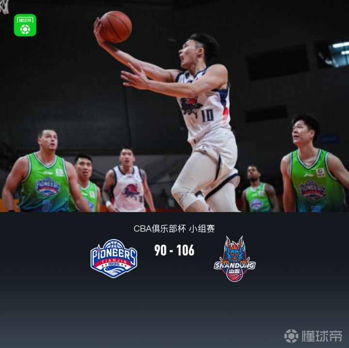 北京时间12月3日CBA俱乐部杯 小组赛,天津先行者对阵山东高速。半场天津49-51山东,最终天津90-106山东。