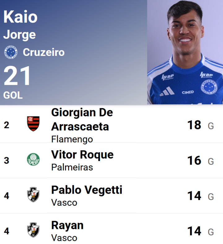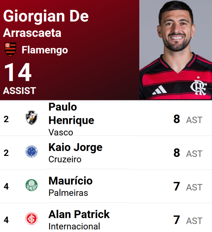 直接参与G/A3人:安德烈-路易斯(科林蒂安)迈克(圣保罗)雷纳托-马尔克斯(米拉索尔)分别打进1球。