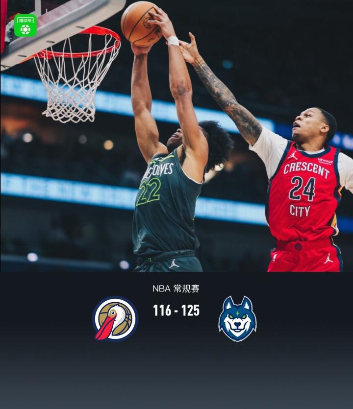 第四节鹈鹕萨迪克-贝拿下10分,森林狼纳兹-里德拿下11分,最终鹈鹕116-125不敌森林狼