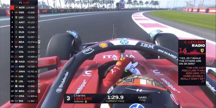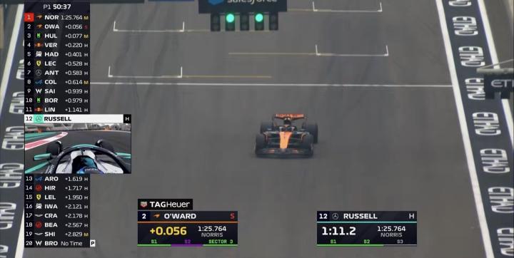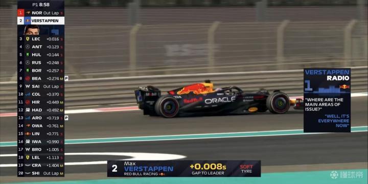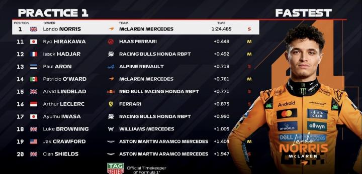 一练停表,诺里斯拿下全场最快 ,维斯塔潘第2,勒克莱尔第3;