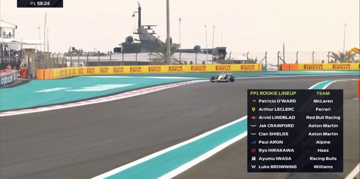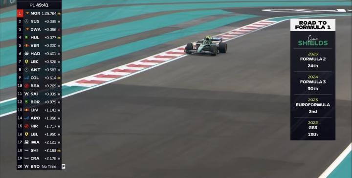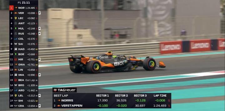 F1阿布扎比一练:诺里斯全场最快,维斯塔潘第2,9位新秀登场