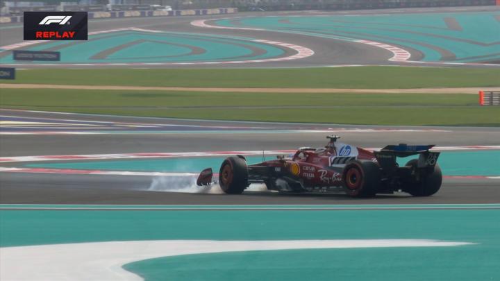 勒克莱尔弟弟吐槽哥哥刚才在为车迷们做烧胎表演,Ricky告知前者后者在5号弯赛车失控;
