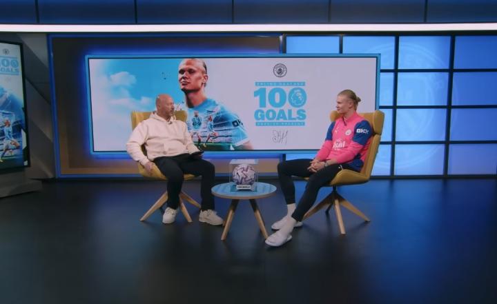 在以111场打破英超历史最快百球纪录后,曼城前锋哈兰德接受了原纪录保持者阿兰-希勒(124场100球)的采访,并一起回顾了哈兰德英超100球中多个精彩进球。