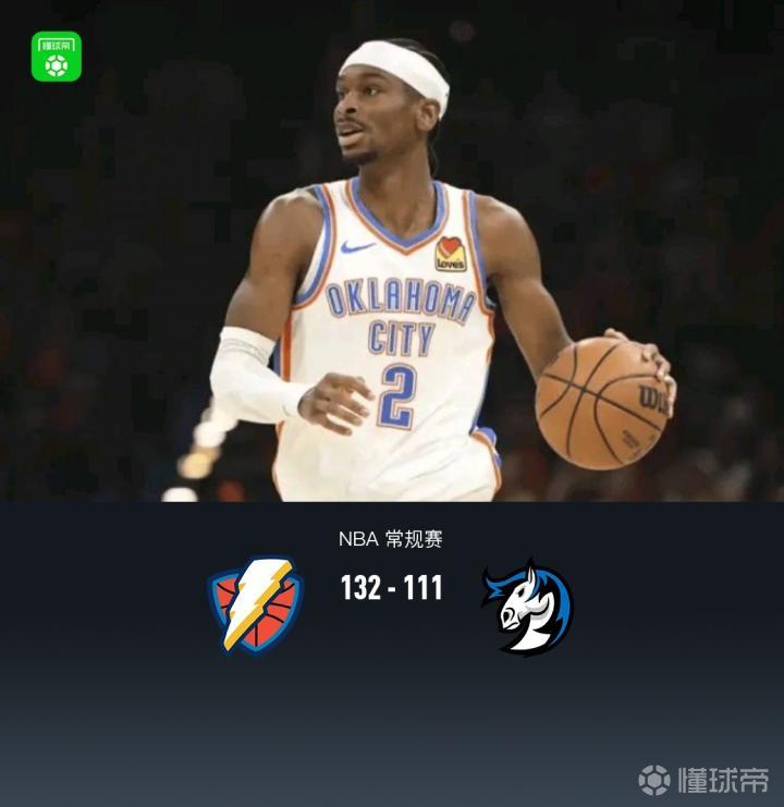 第四节,雷霆提前收兵换下主力,独行侠继续主力轮换,但依旧没能占据明显优势缩小分差,浓眉终于拿到本场首分,后半节独行侠也收兵换下主力,全场结束,雷霆132-111独行侠。