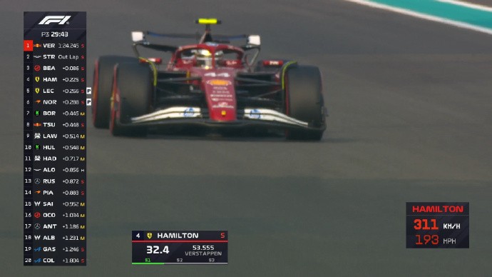 三练进行到一半,目前场上前十:三练半程前十:维斯塔潘、斯托尔、贝尔曼、汉密尔顿、勒克莱尔、诺里斯、博托莱托、角田裕毅、劳森、霍肯伯格