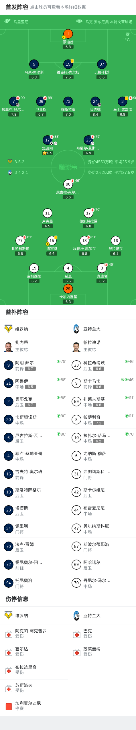 第28分钟,莫斯克拉脚后跟传球,贝尔加利扣开防守劲射破门,维罗纳1-0