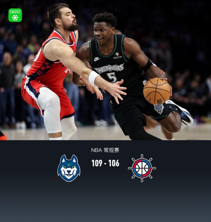 森林狼109-106逆转快船,哈登34分错失绝平,爱德华兹11中3