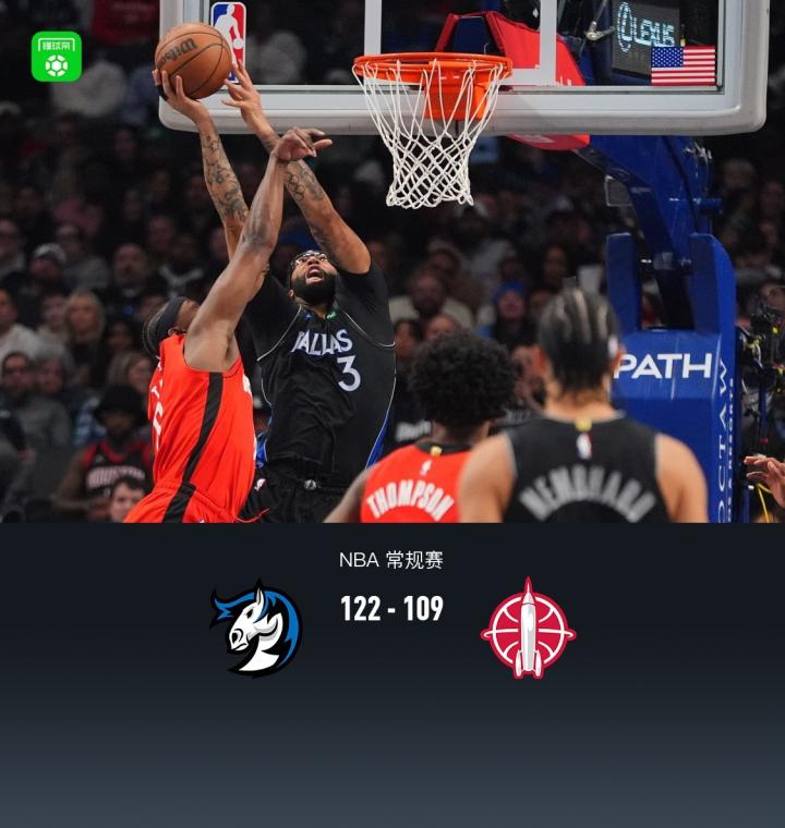 独行侠122-109击败火箭,浓眉29+8,杜兰特27分