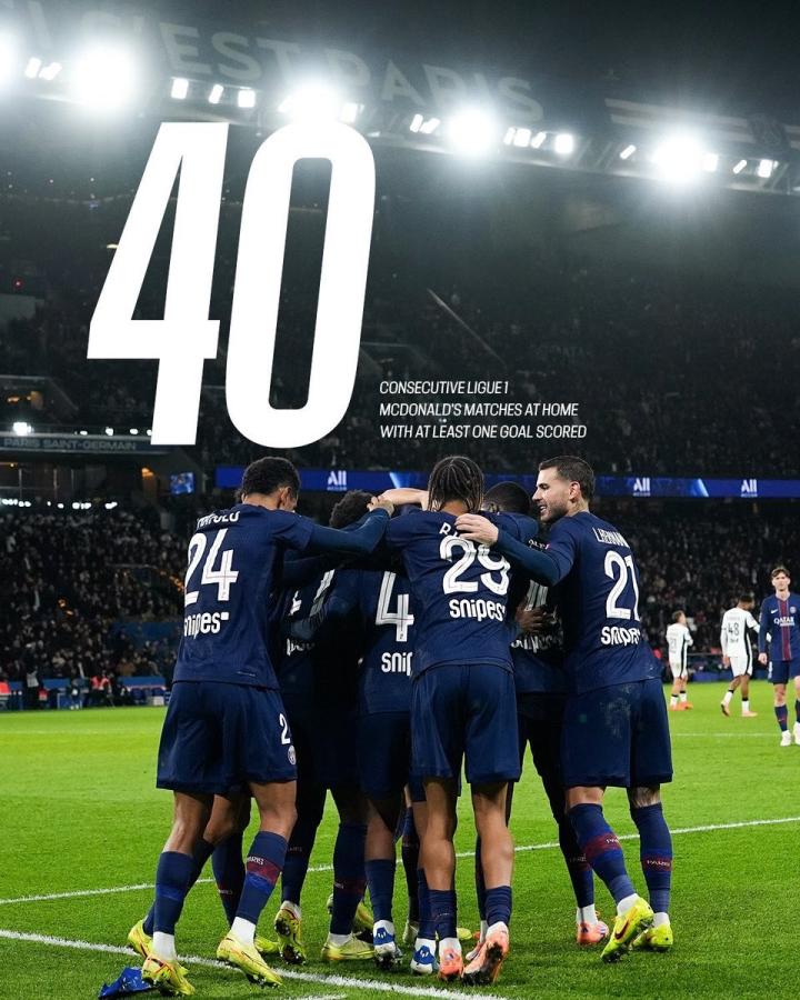 大巴黎连续40场法甲主场进球,为队史最长纪录ETChalmers @懂球帝2025-12-07 19:39法甲第15轮,巴黎圣日耳曼主场5-0大胜雷恩,至此,巴黎圣日耳曼已连续40场法甲主场进球,为队史最长纪录。在5-0大胜雷恩之后,巴黎圣日耳曼最近40场法甲主场比赛都有进球(期间一共打入104球),这是巴黎圣日耳曼队史顶级联赛主场最长进球纪录。巴黎圣日耳曼上一次在联赛主场被零封是2023-24赛季首轮,当时他们0-0战平了洛里昂。展开更多