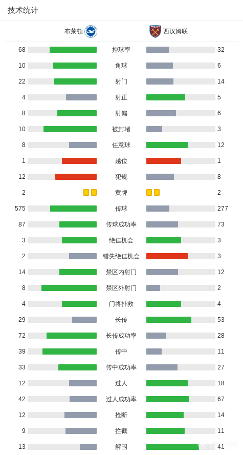 第33分钟,布莱顿左路传中制造威胁,魏费尔门前蹭射偏出