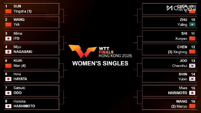 WTT香港总决赛女单签表:王曼昱首轮对阵张本美和gaoniu @懂球帝2025-12-08 16:1512月8日,WTT香港总决赛女队签表出炉:王曼昱首轮对阵张本美和。昨日进行的乒乓球混团世界杯决赛,王曼昱曾3-0完胜张本美和。女单签表【上半区】孙颖莎🇨🇳 vs 🇨🇳王艺迪伊藤美诚🇯🇵 vs 🇯🇵长崎美柚蒯曼🇨🇳 vs 🇯🇵早田希娜大藤沙月🇯🇵 vs 🇯🇵桥本帆乃香【下半区】陈熠🇨🇳 vs 🇲🇴朱雨玲石洵瑶🇨🇳 vs 🇨🇳陈幸同朱芊曦🇰🇷 vs 🇰🇷申裕斌张本美和🇯🇵 vs 🇨🇳王曼昱展开更多
