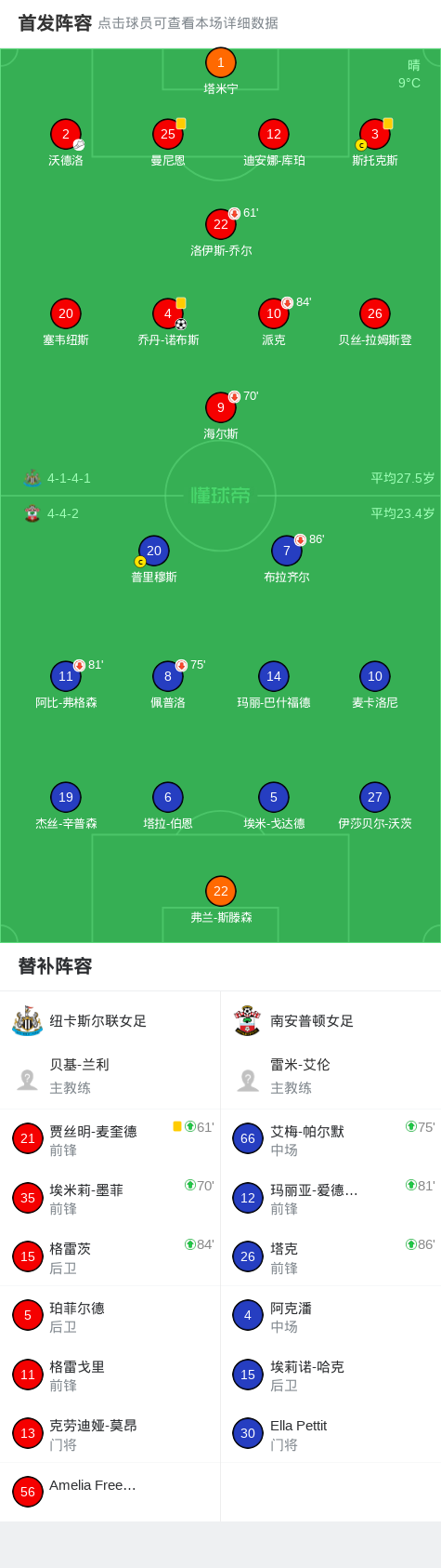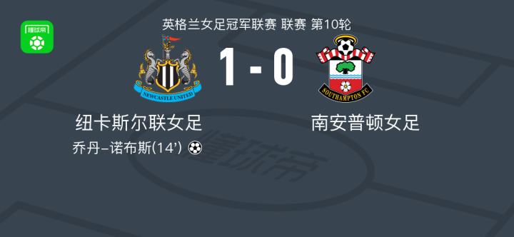 纽卡斯尔联女足1-0南安普顿女足,乔丹-诺布斯制胜球