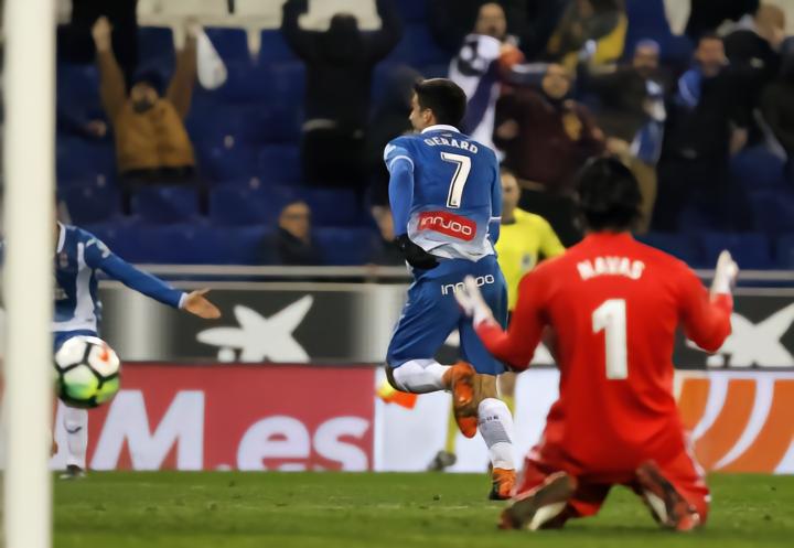 眼看比赛就要双方互交白卷结束,但第93分钟西班牙人的主场沸腾了!球队头号射手杰拉德-莫雷诺接应长传将皮球分边给到加西亚,后者右路起球传中,杰拉德-莫雷诺面对皇马三名后卫的封堵,劲射破门!凭借这个进球,西班牙人主场1-0力克皇马。