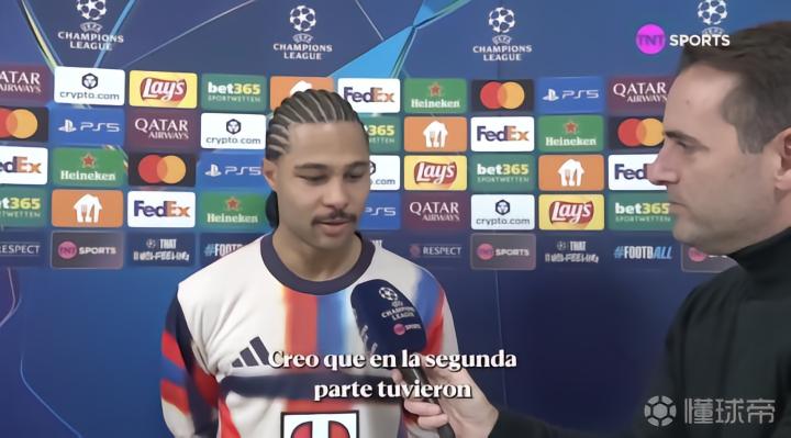 欧冠联赛阶段第6轮,拜仁主场3-1战胜葡萄牙体育,本场比赛贡献1球1助的格纳布里赛后接受了TNT体育墨西哥频道的采访。