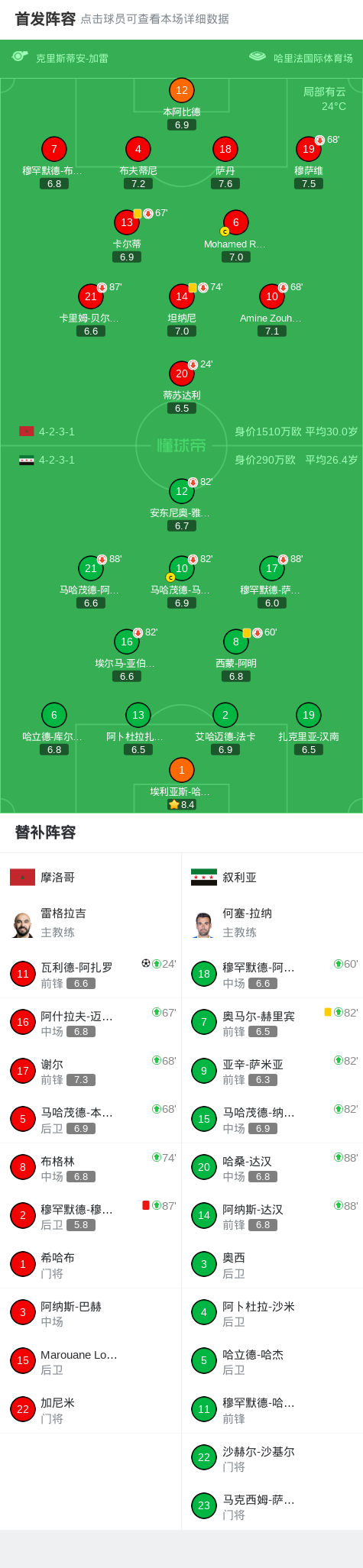 下半场补时第1分钟,摩洛哥球队穆罕默德-穆菲德吃到红牌。