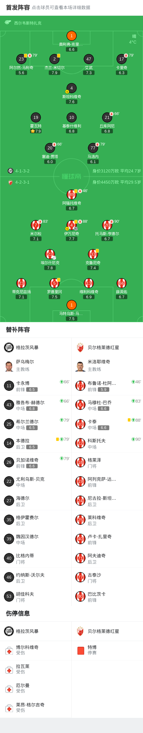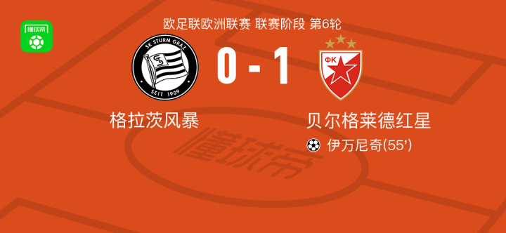 贝尔格莱德红星1-0格拉茨风暴,伊万尼奇一击制胜
