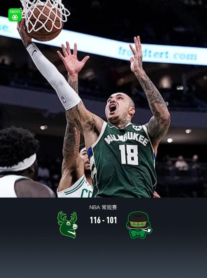 无字母雄鹿116-101逆转凯尔特人,库兹马31分,杰伦布朗30分