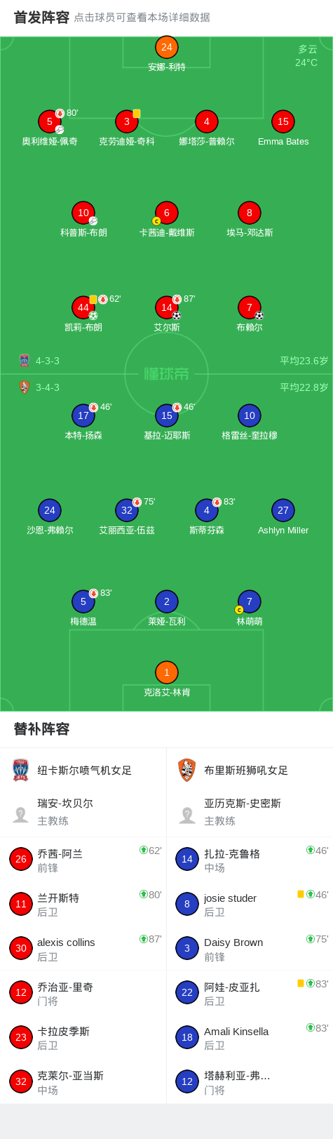 第32分钟,纽卡斯尔喷气机女足球员奥利维娅-佩奇助攻艾尔斯打入一球。