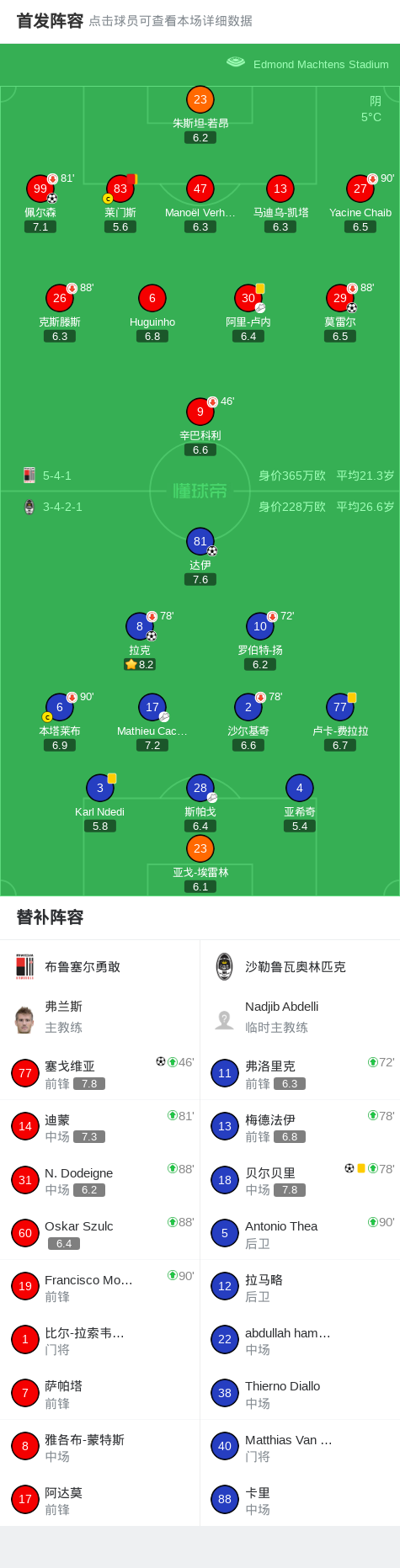 第49分钟,布鲁塞尔勇敢球队莱门斯吃到第二张黄牌。