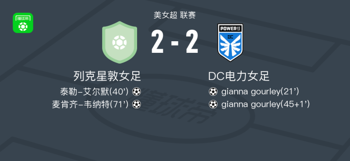 列克星敦女足2-2DC电力女足,gianna gourley破僵,麦肯齐-韦纳特救主