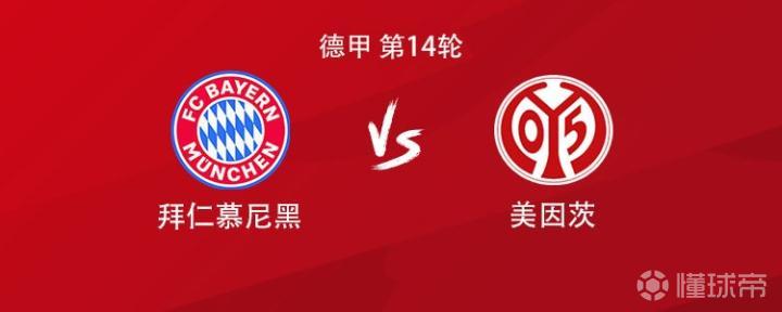 北京时间12月15日0:30,德甲第14轮,拜仁主场对阵美因茨。赛前首发公布。