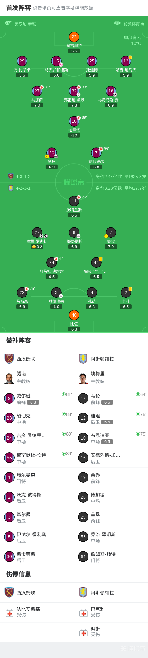 维拉3-2逆转西汉姆联,罗杰斯双响,马夫罗帕诺斯送乌龙