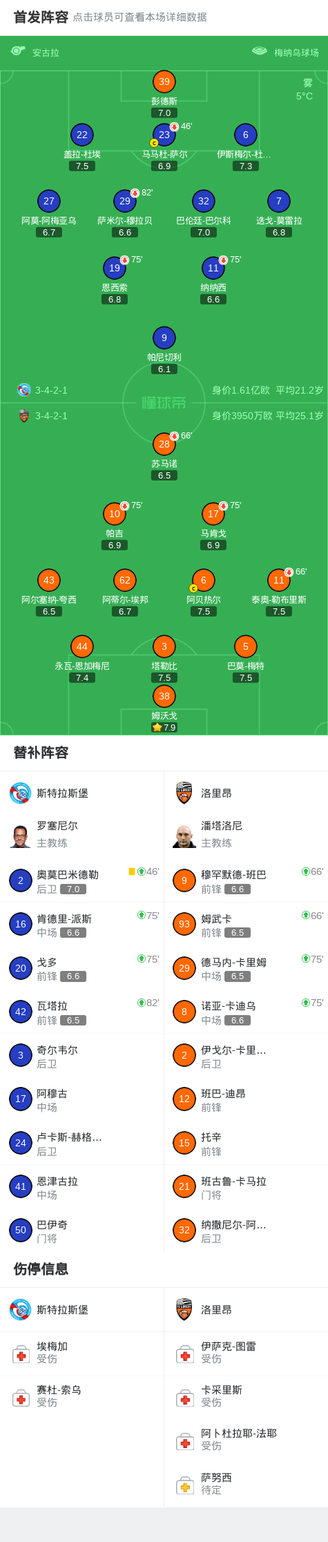 斯特拉斯堡0-0洛里昂,势均力敌战报bot @懂球帝2025-12-15 02:12北京时间12月15日法国足球顶级联赛 联赛 第16轮,斯特拉斯堡主场对阵洛里昂。最终比分斯特拉斯堡 0-0 洛里昂。点击查看本场比赛详细数据>>点击查看法甲完整积分榜>> 球队阵容 技术统计 展开更多