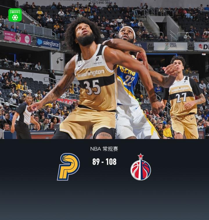 第四节步行者内姆布哈德拿下7分,奇才巴格利拿下9分,最终步行者89-108不敌奇才