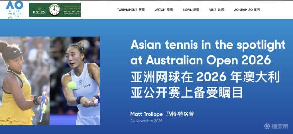 此外,澳网官方近日发文,为明年参赛的亚洲选手们造势,郑钦文与大坂直美登上头图。