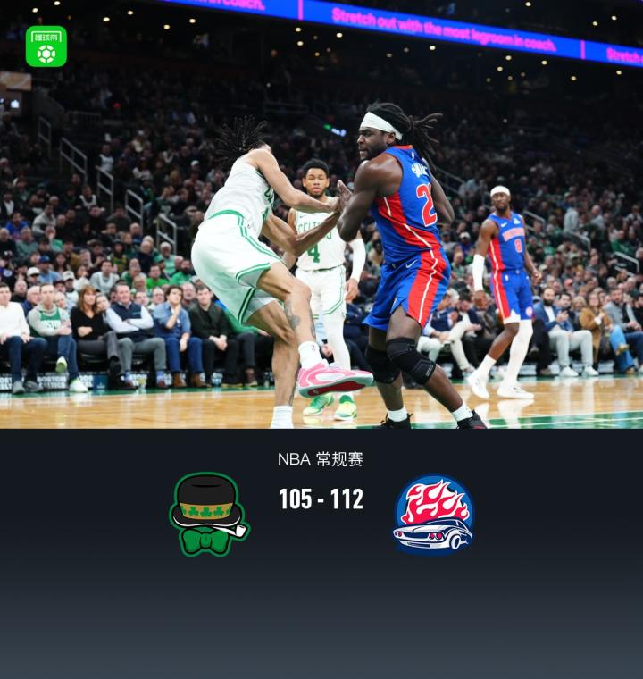 第四节凯尔特人德里克-怀特拿下14分,活塞坎宁安拿下9分,最终凯尔特人105-112不敌活塞