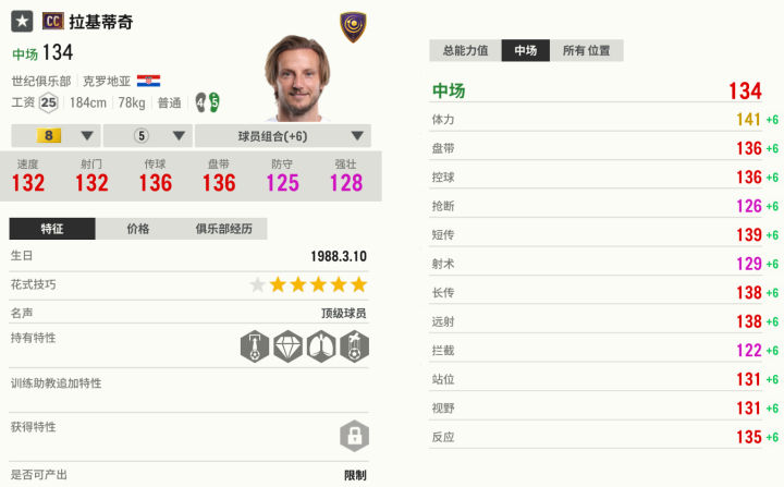 克罗地亚传奇中场拉基蒂奇已经退役,所以在FC ONLINE里暂时处于无版权的限制状态。在他绝版以前,就很长时间没出新卡,至今最好的版本还是CC。拉基蒂奇是个很全能的中场,有着极强的进攻能力,曾经的插上远射让人印象深刻。