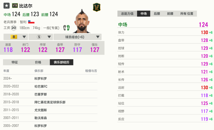 今天最后要介绍的也是位全能中场,来自智利的老将比达尔。他的球风硬、跑动范围大,是个中场的“扫荡”怪兽。比达尔手感极佳,带球或者控制他防守都能灵活完成动作,没有拖沓感。