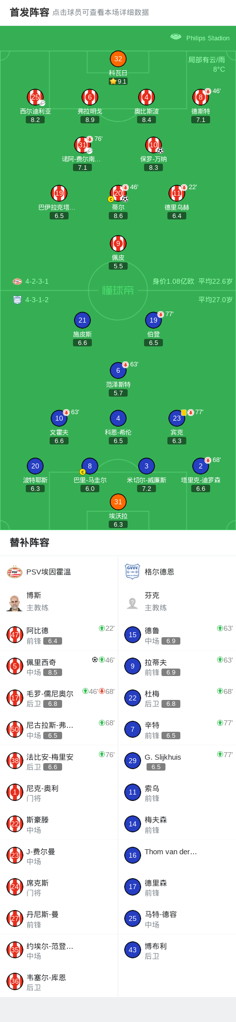 PSV埃因霍温3-0大胜格尔德恩,佩里西奇建功,保罗-万纳破门