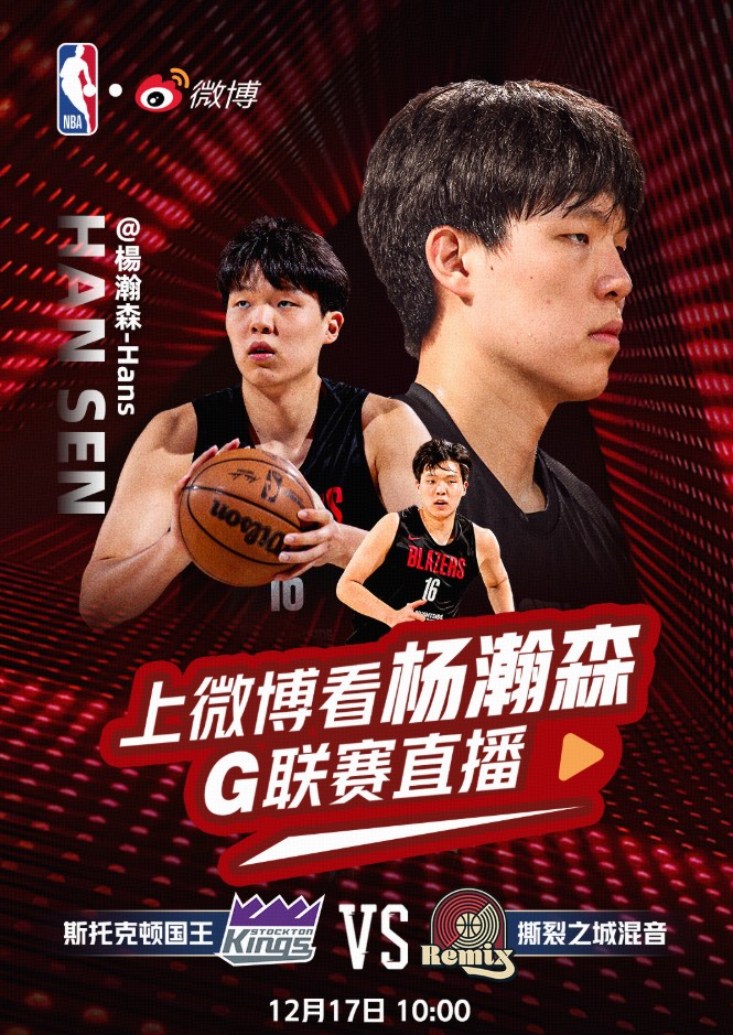 北京时间12月17日,新浪NBA官方宣布,微博将视频直播G联赛斯托克顿国王队vs撕裂之城混音队的比赛。