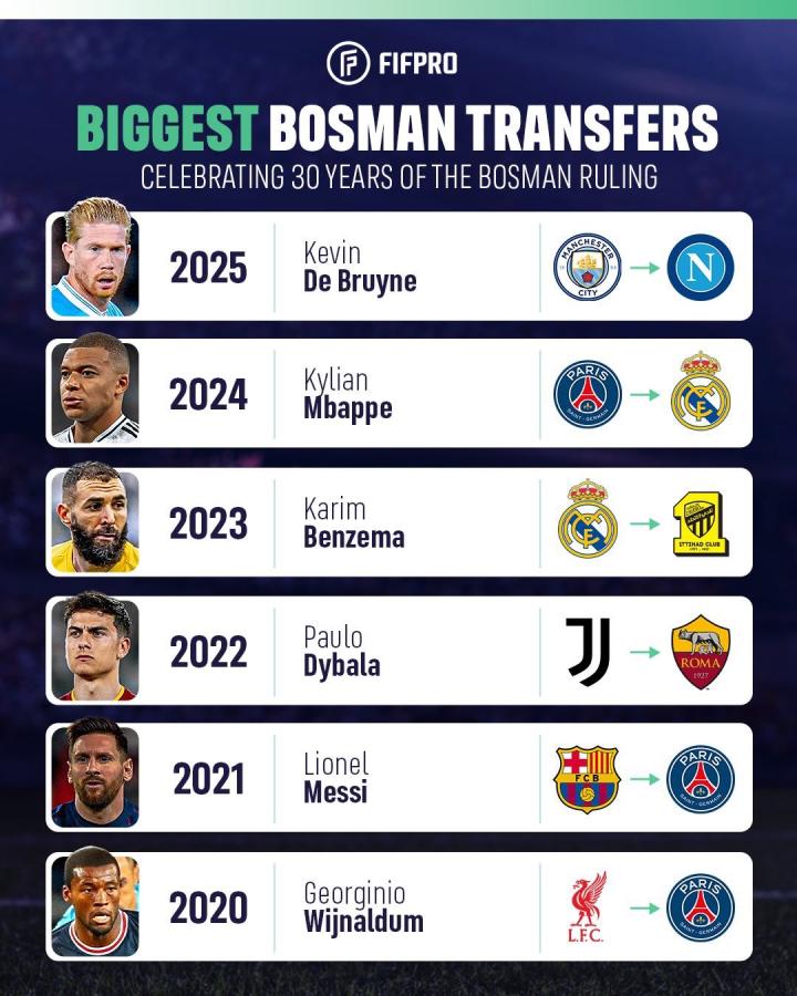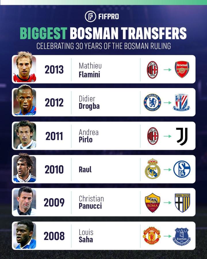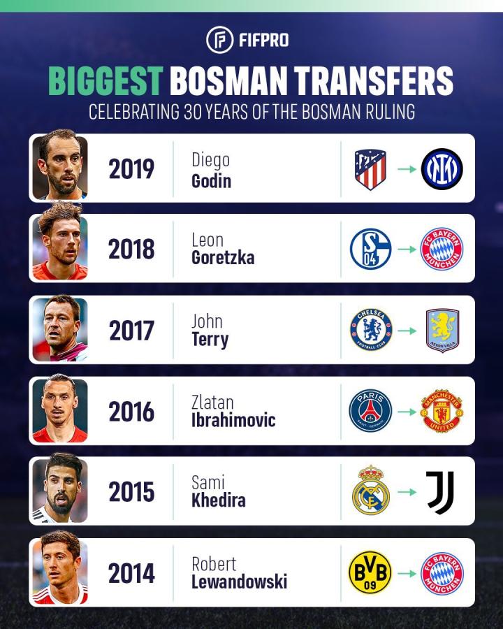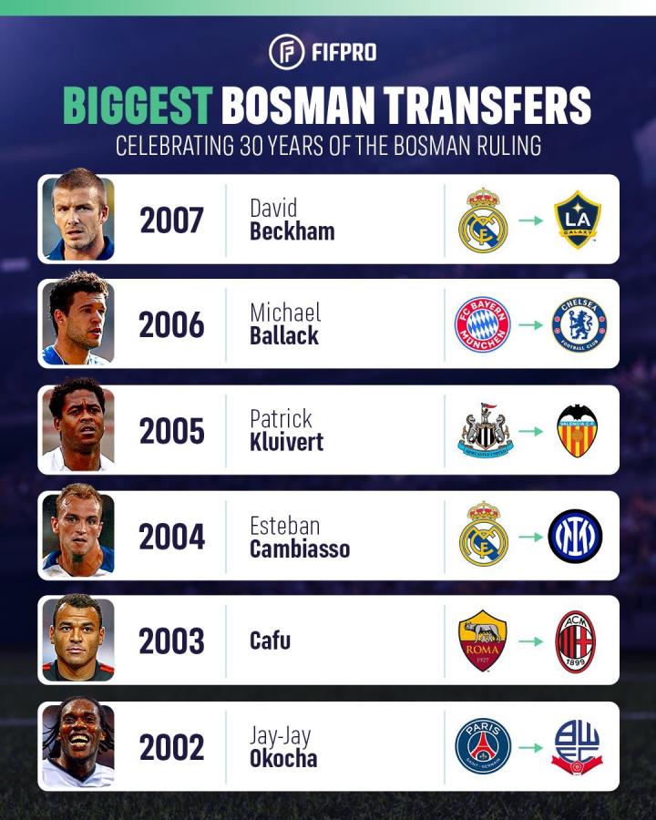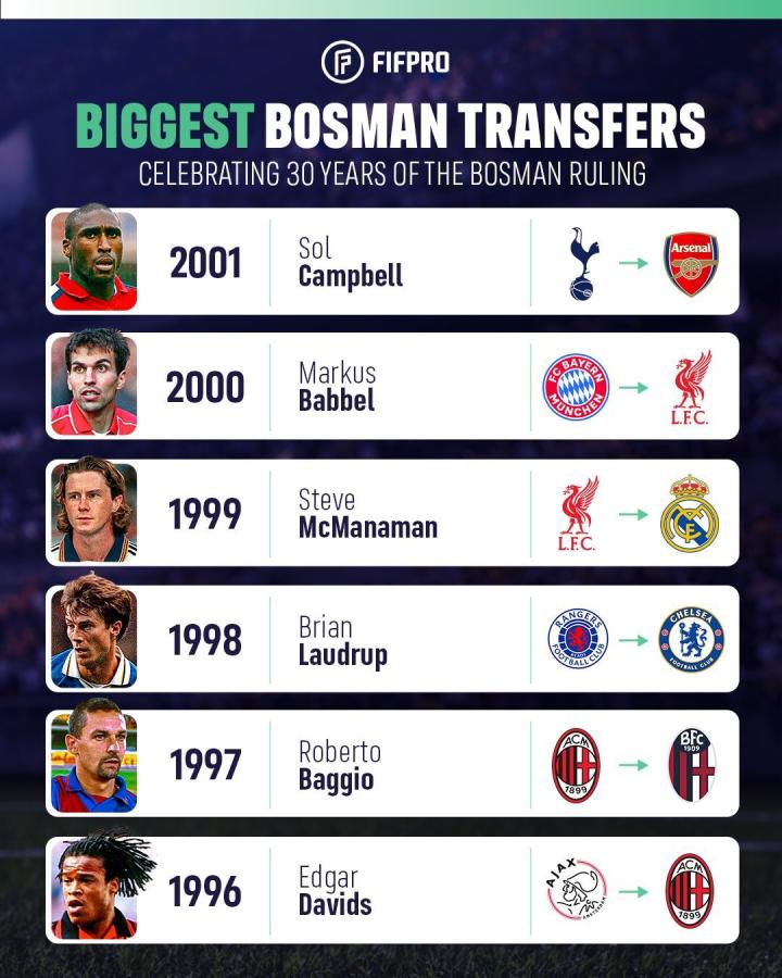 回顾博斯曼法案施行30年,一些著名的代表性转会: