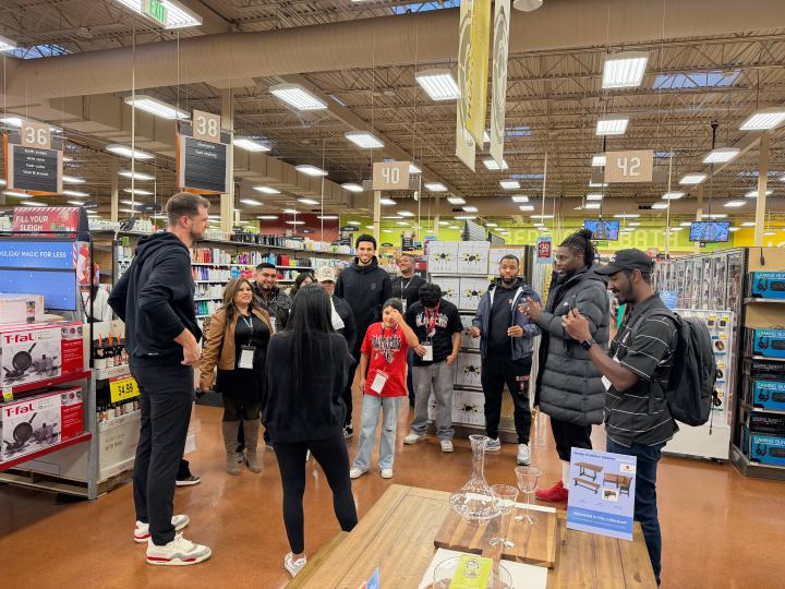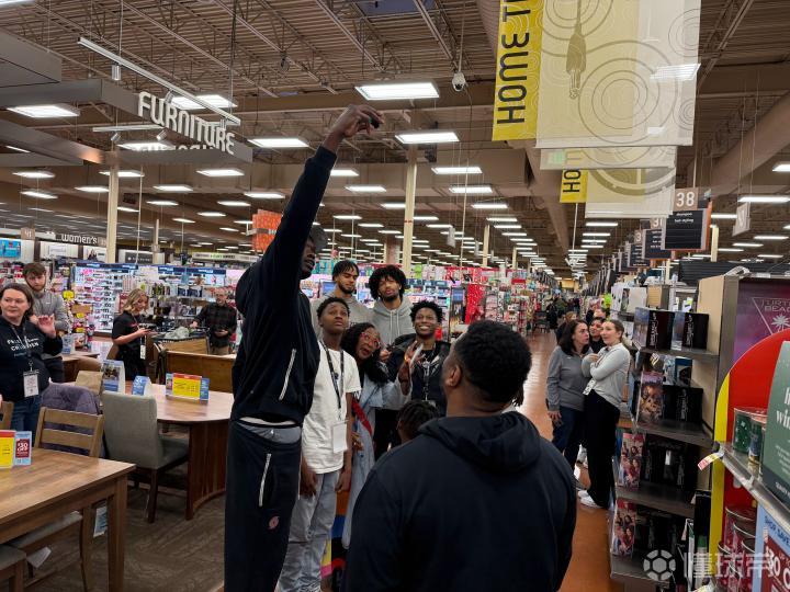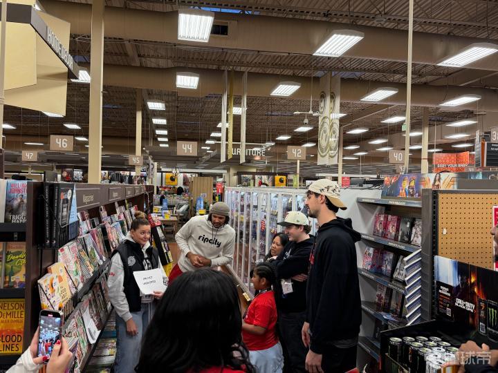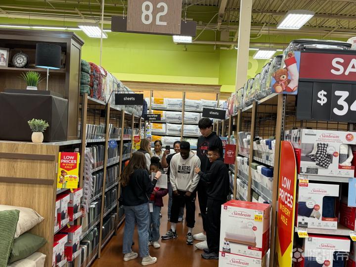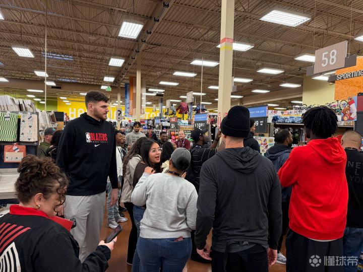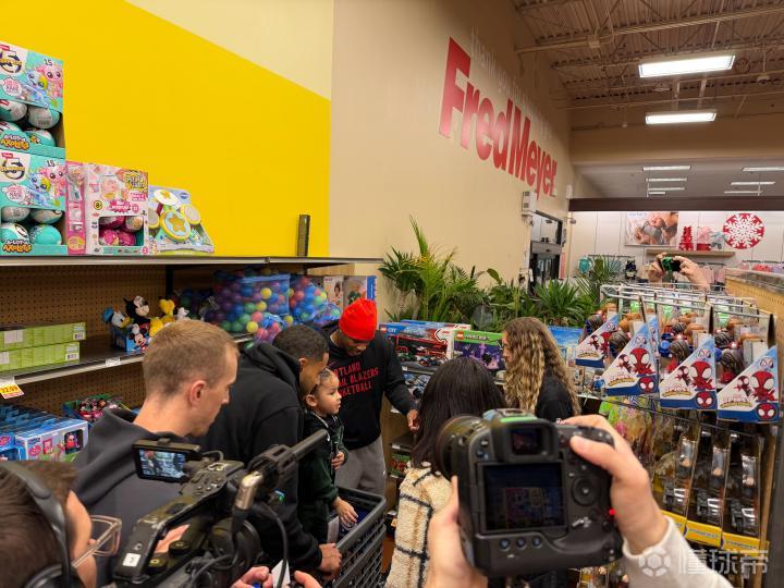 在这次活动中,杨瀚森和其他开拓者队的球员和教练们带着来自低收入家庭的孩子们进行了一次节日购物之旅。