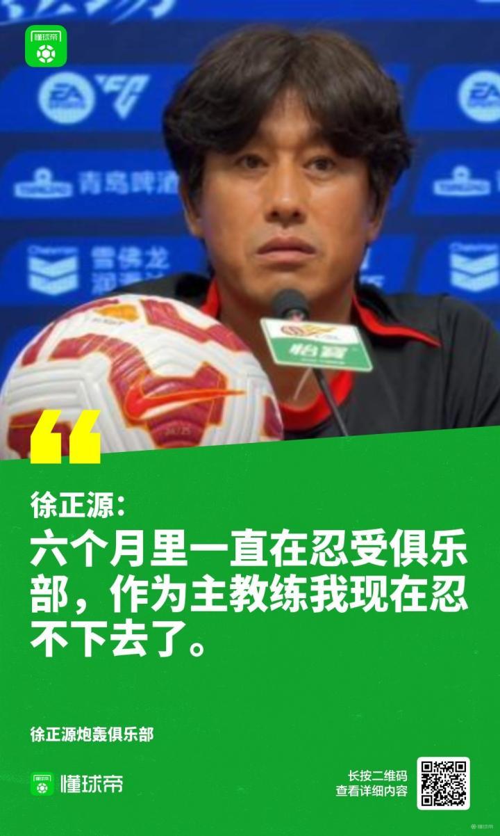 【徐正源:六个月里一直在忍受俱乐部,作为主教练我现在忍不下去了】