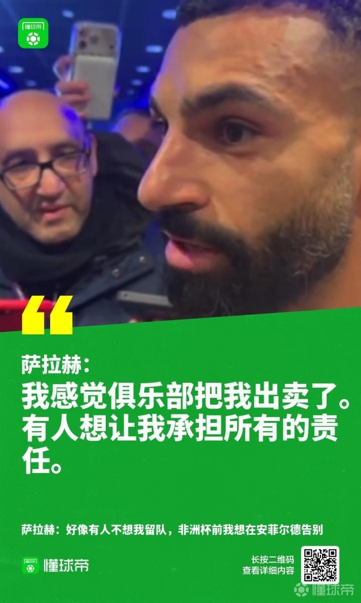 当地时间12月6日晚,利物浦客场3-3战平利兹联赛后,连续三次替补且本场比赛未出场的萨拉赫主动来到赛后混采区,面对着媒体进行了对利物浦长篇大论的控诉。萨拉赫为自己无法获得首发位置感到愤怒,认为俱乐部没有履行承诺;同时他认为俱乐部中有人出卖了自己,想把球队表现不佳的责任全部推到自己身上。他甚至主动提及了主帅斯洛特,表示“突然之间,我们之间就没有任何关系了,好像有人不想让我留队”。萨拉赫甚至说出了打算非洲杯前在安菲尔德向球迷告别的言论。