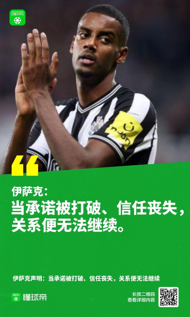 伊萨克、纽卡、利物浦共同缔造了2025夏窗战线最长的转会肥皂剧。一心想加盟利物浦的伊萨克不惜采取罢训的手段要求纽卡放人,并在社交媒体发表声明谴责纽卡不守信用。纽卡随后发文反击,表示球员和俱乐部之间没有达成任何承诺。多名纽卡球员也公开站队,对伊萨克的言论表达不满。伊萨克的声明不仅引爆了网络舆论,更进一步疏离了他和纽卡的关系。