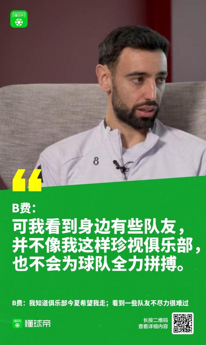 【B费:我知道俱乐部今夏希望我走;看到一些队友不尽力很难过】