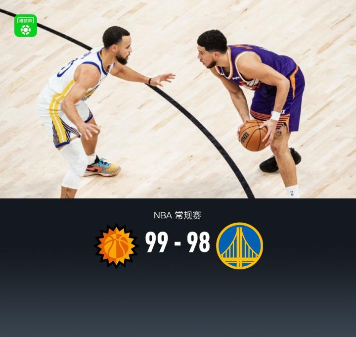第四节太阳德文-布克拿下10分,勇士波杰姆斯基拿下10分,最终太阳99-98战胜勇士
