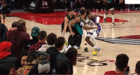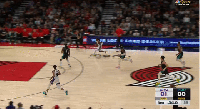 格兰特转身过掉威少,单臂残暴隔扣雷诺