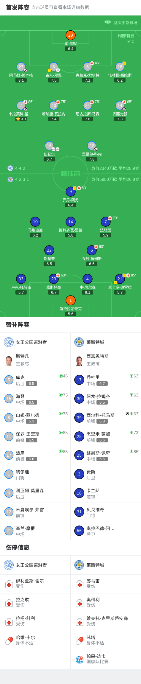 女王公园巡游者4-1大胜莱斯特城,阿马杜-姆本格、卡拉莫科-登贝莱破门