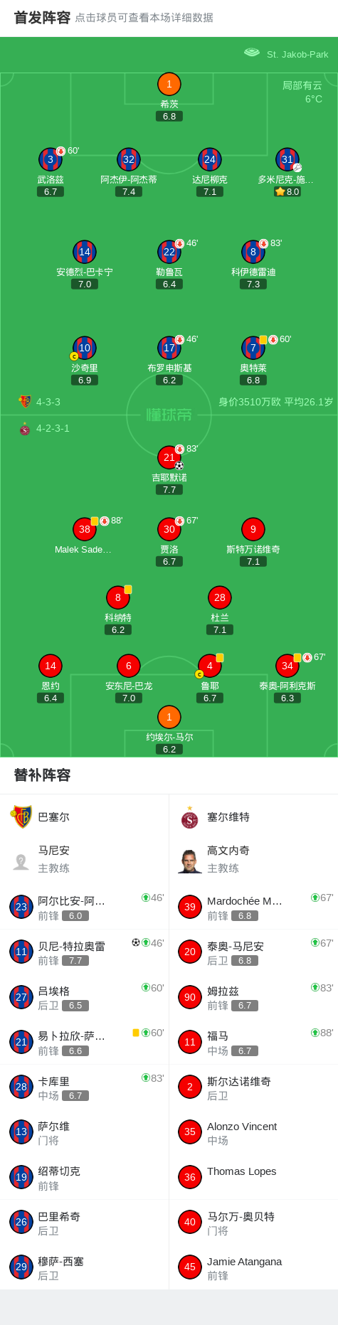 第64分钟,巴塞尔球员多米尼克-施密德助攻贝尼-特拉奥雷打入一球。