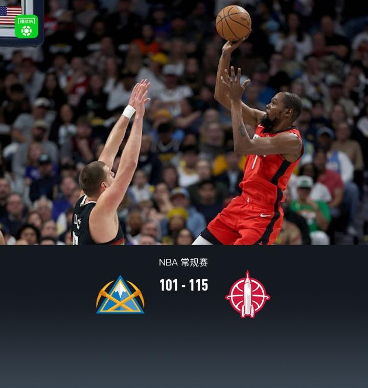 第四节掘金贾马尔-穆雷拿下8分,火箭杜兰特拿下11分,最终掘金101-115不敌火箭