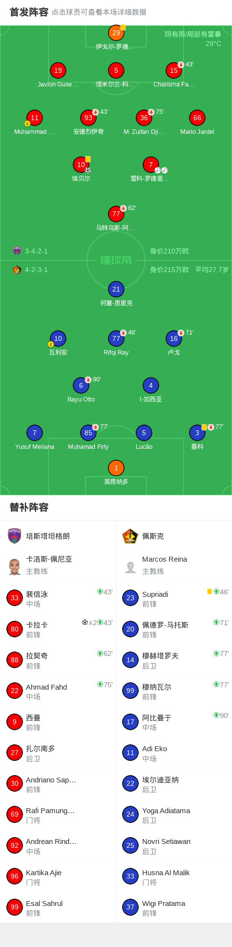 北京时间12月21日,印度尼西亚超级联赛第15轮展开较量,培斯塔坦格朗坐镇主场迎战佩斯克。比赛中,雷科-罗德里格斯送出精准助攻,帮助卡拉卡率先打破僵局。随后,卡拉卡再度发力,成功再入一球,实现个人梅开二度。比赛后段,雷科-罗德里格斯再次展现进攻组织能力,助攻埃贝尔攻门得手,进一步扩大领先优势。最终,培斯塔坦格朗以3比0战胜对手,全取三分。