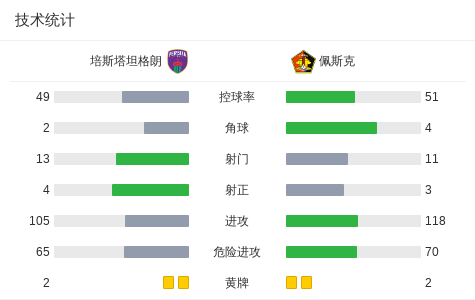 第66分钟,培斯塔坦格朗球员雷科-罗德里格斯助攻卡拉卡打入一球。