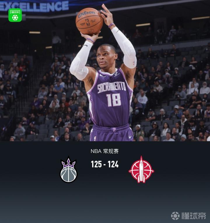 加时赛国王施罗德拿下9分,火箭小贾巴里-史密斯拿下7分,最终国王125-124战胜火箭