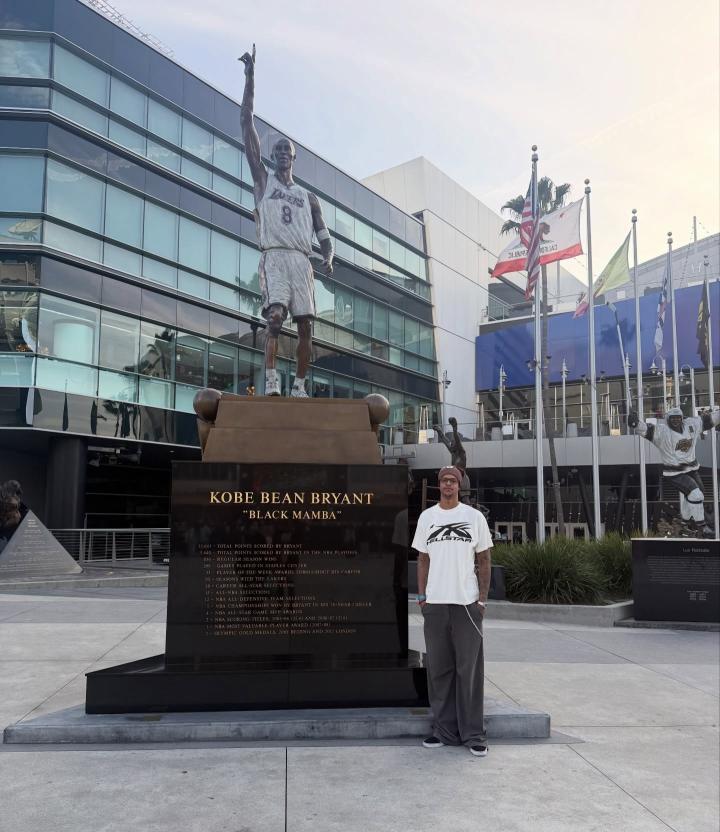 北京时间今日,湖人传奇球星沙奎尔-奥尼尔的儿子谢里夫-奥尼尔更新个人社媒,晒出了自己在湖人主场外围与科比雕像的合影。