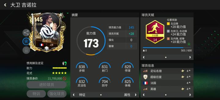 三国·群雄逐鹿坎通纳配备了强力锋霸天赋,高级油炸丸子基础花式。身材高大的坎通纳既能作为锋线支点头球得分,也能作为持球手推动进攻,虽然他的花式手感一般,但出色的抗干扰能力让他的盘带控球更加稳定。